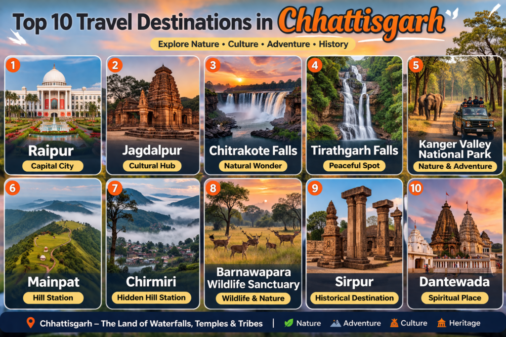 If you are planning your first trip, choosing the right destination is very important. This guide will help you explore the top travel destinations in Chhattisgarh in a simple and practical way. Chhattisgarh is one of the most peaceful and budget-friendly states in India, making it perfect for beginners.